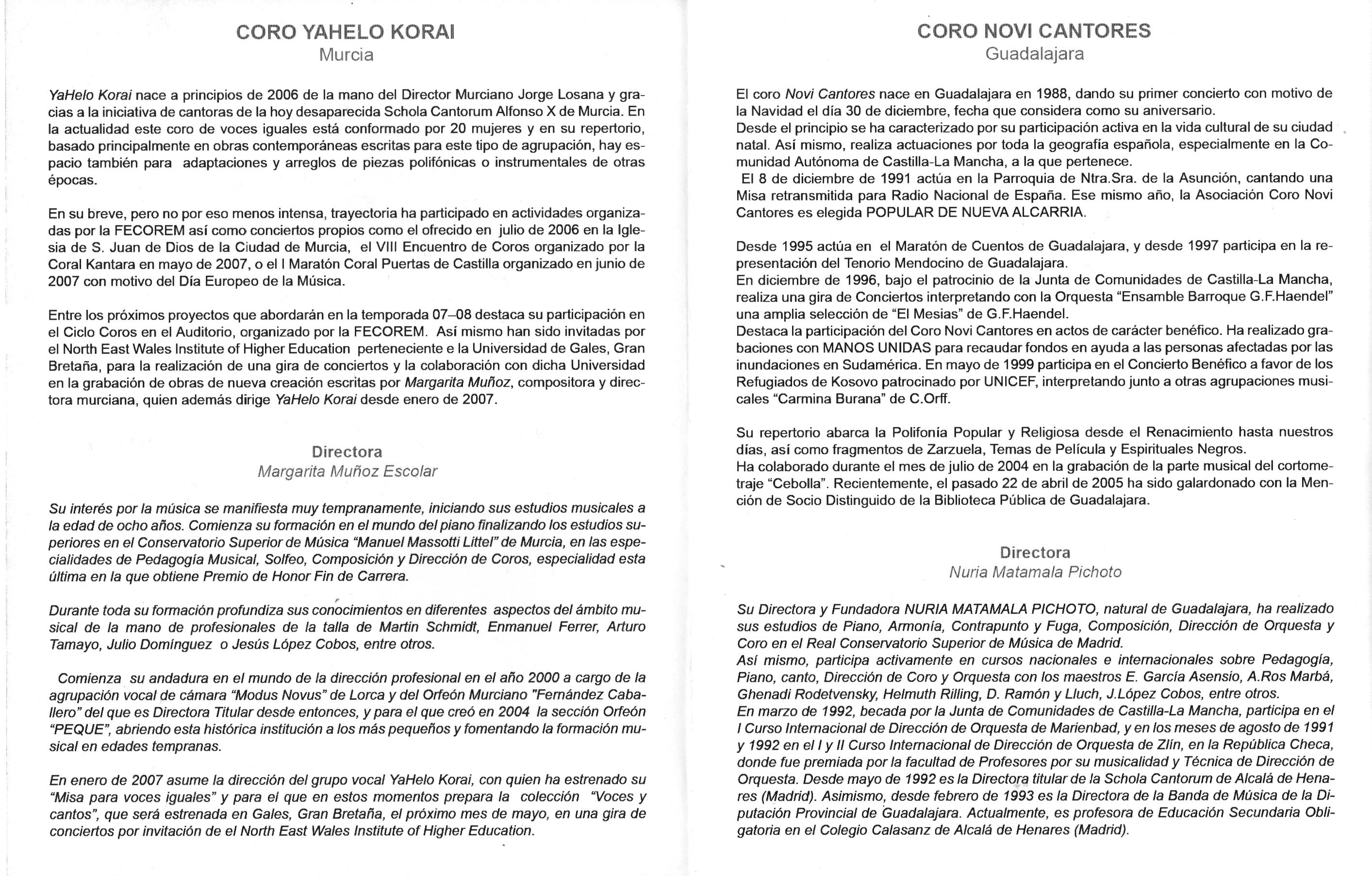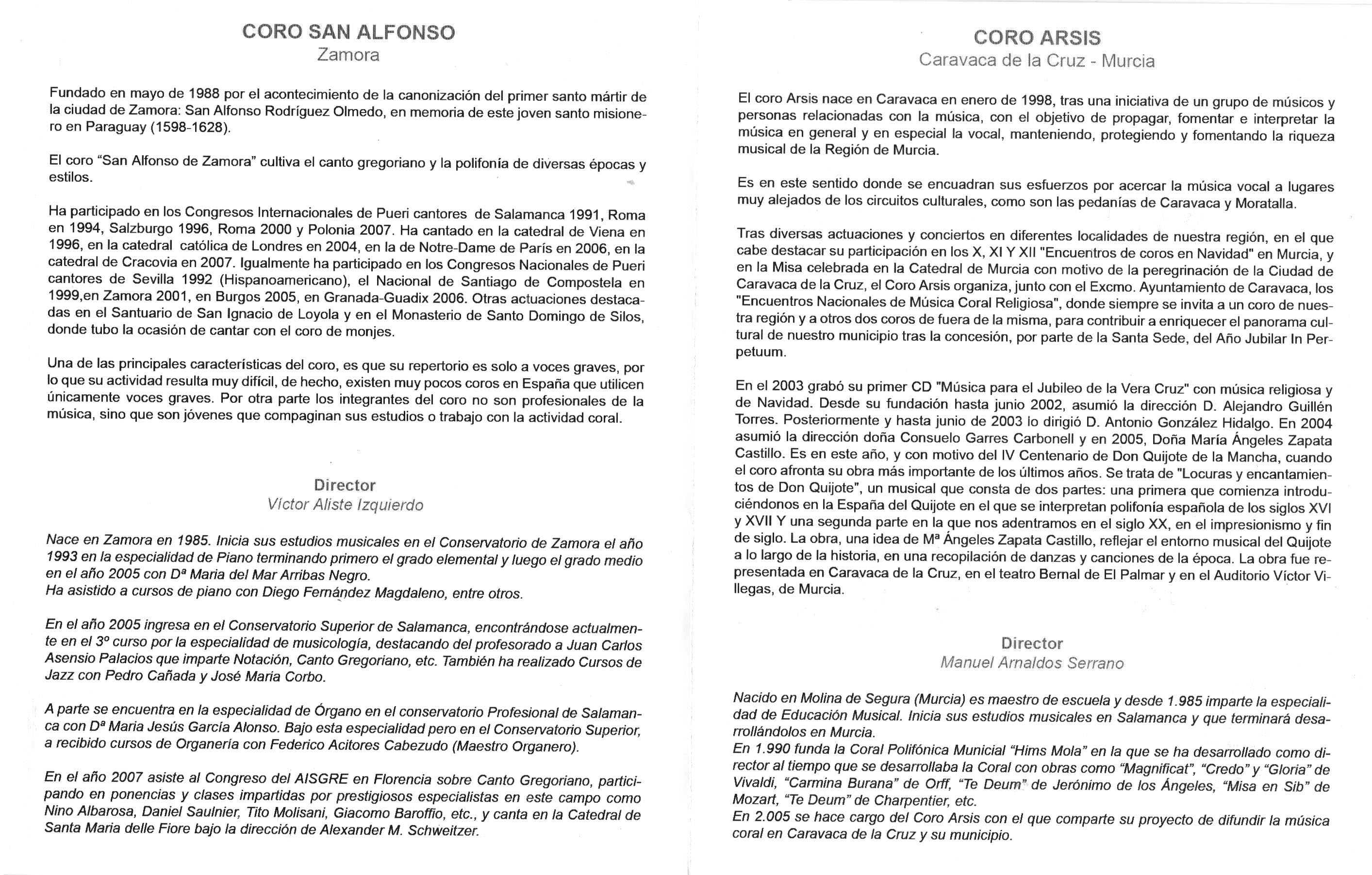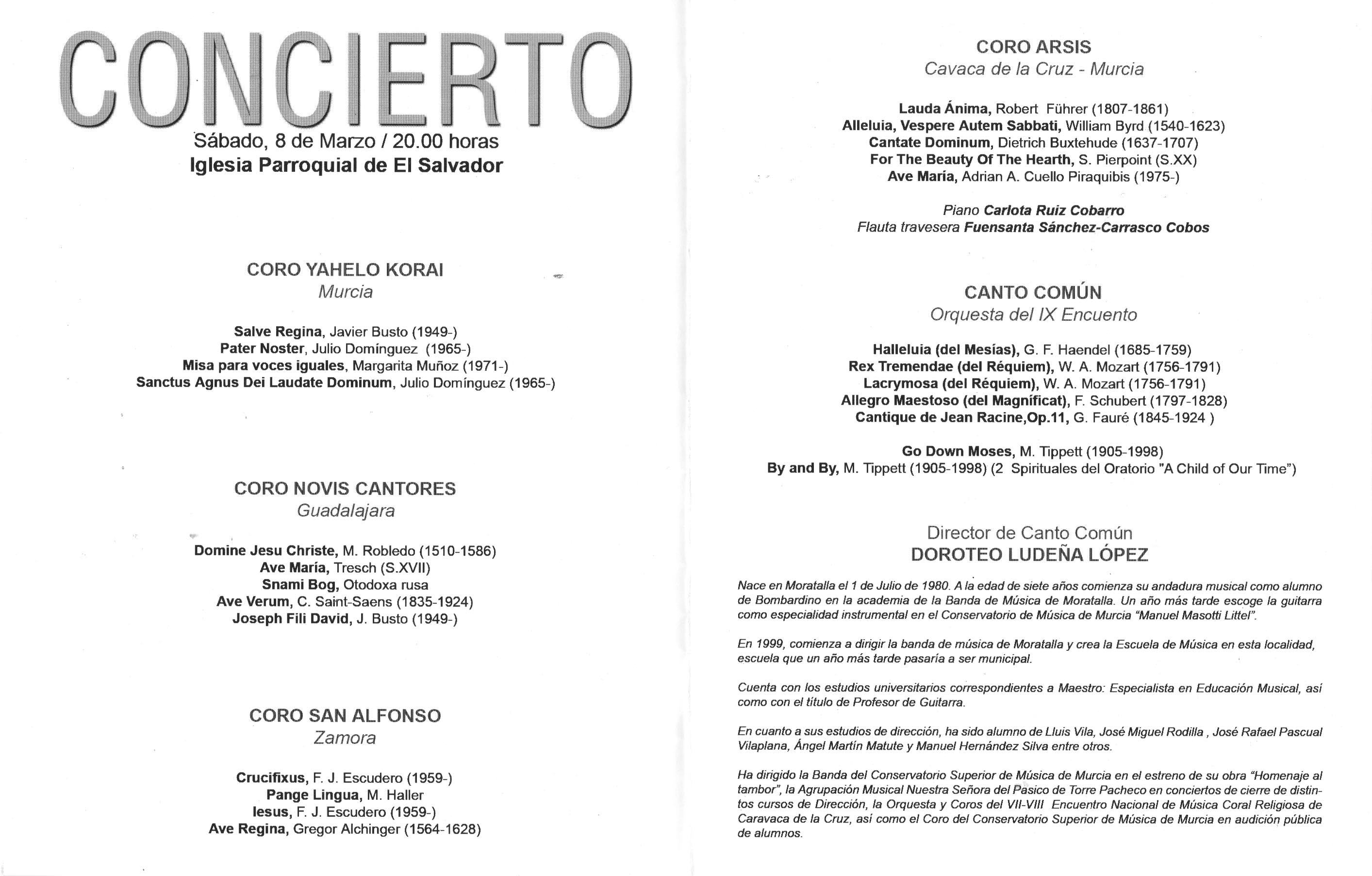 COROS: Yahelo Korai (Murcia), Coro Novi Cantores (Guadalajara), San Alfonso (Zamora) y Arsis (Caravaca) |